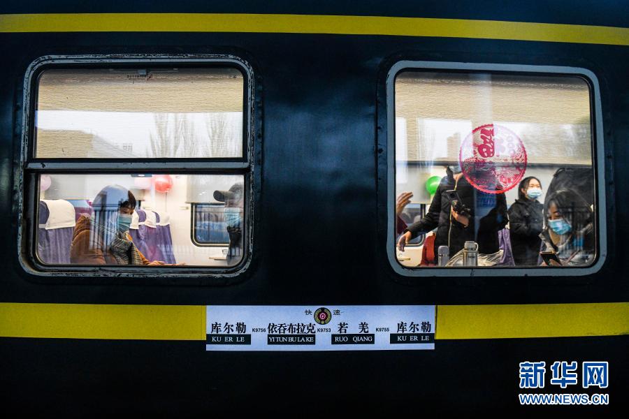 12月9日,在新疆庫(kù)爾勒站,旅客剛剛登上K9756次客運(yùn)列車。新華社記者 王菲 攝
