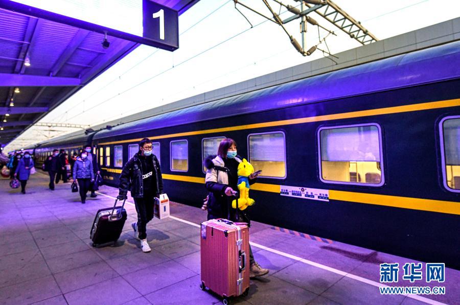 12月9日,在新疆庫(kù)爾勒站,旅客準(zhǔn)備登上K9756次客運(yùn)列車。新華社記者 王菲 攝