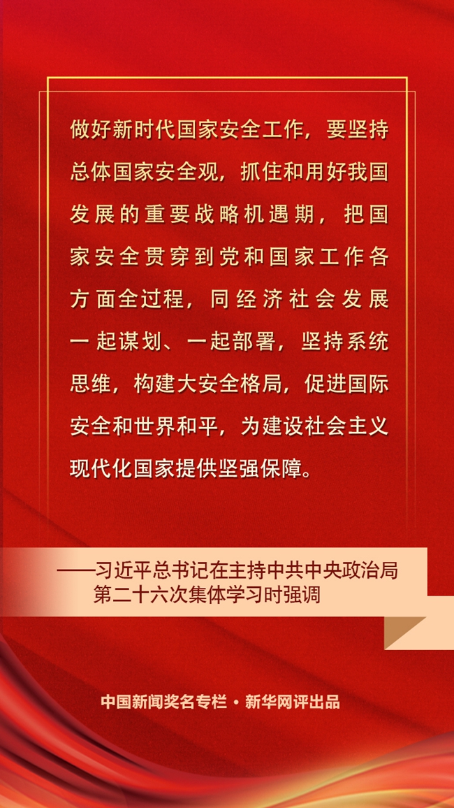 習近平在中央政治局第二十六次集體學習時強調 堅持系統(tǒng)思維構建大安全格局 為建設社會主義現(xiàn)代化國家提供堅強保障