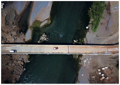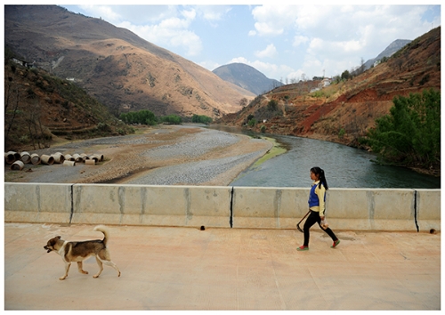 ????2019年12月12日,貴州省威寧縣斗古鎮(zhèn)的村民行走在牛欄江新修的橋上。楊文斌 攝