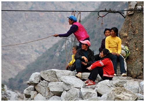????2013年3月7日,云南省會(huì)澤縣火紅鄉(xiāng)的村民牽引溜索過江。楊文斌 攝