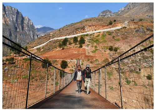 ????2019年12月11日,云南省會(huì)澤縣馬路鄉(xiāng)的村民通過跨江人行橋到貴州省威寧縣。楊文斌 攝