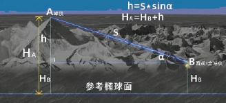 1847年,英屬印度測(cè)量局在離珠峰300多公里外的恒河平原上,利用三角高程測(cè)量方法對(duì)珠峰高度進(jìn)行了首次測(cè)量,測(cè)得高程為8778米。所謂三角高程測(cè)量方法,就是在位于山腳的地面測(cè)站架設(shè)光學(xué)測(cè)量?jī)x器,專(zhuān)業(yè)測(cè)量人員照準(zhǔn)珠峰峰頂雪面,測(cè)量地面測(cè)站到峰頂?shù)木嚯x,再測(cè)量峰頂?shù)母叨冉?,也就是觀測(cè)視線與水平面之間的夾角,最后按照三角函數(shù)關(guān)系計(jì)算出珠峰高度。