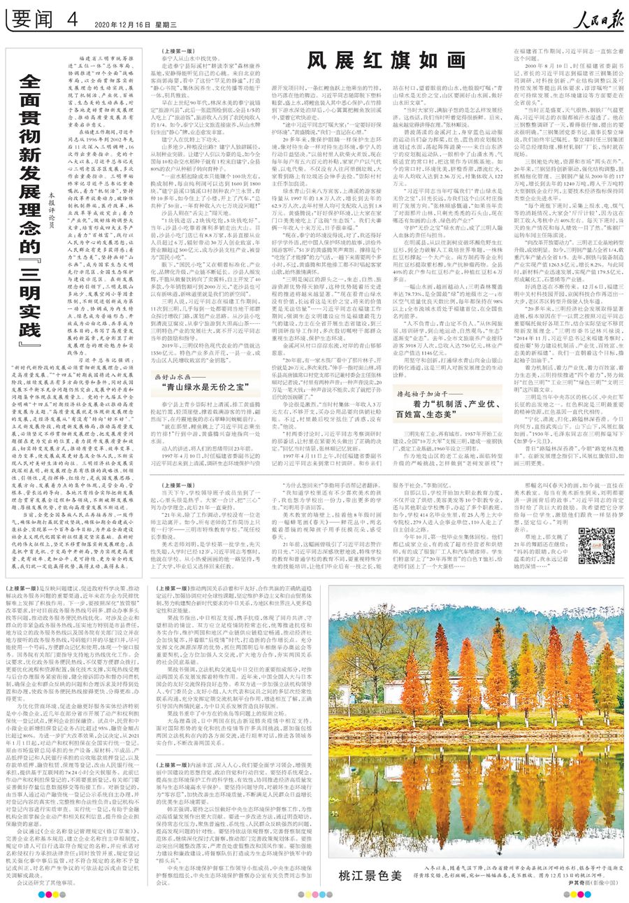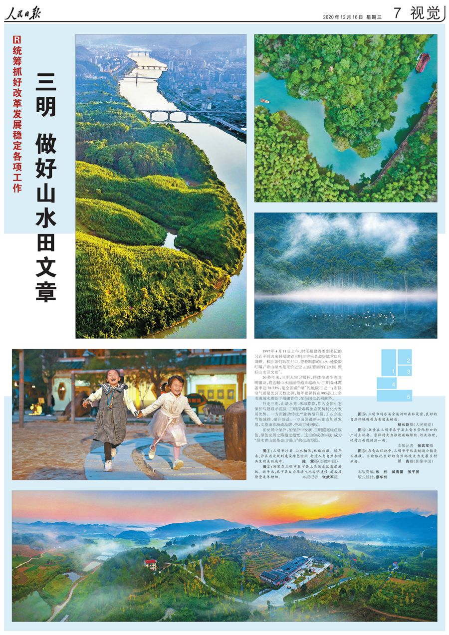 福建省三明市統(tǒng)籌推進(jìn)“五位一體”總體布局、協(xié)調(diào)推進(jìn)“四個(gè)全面”戰(zhàn)略布局,以全面貫徹落實(shí)新發(fā)展理念的生動(dòng)實(shí)踐,展現(xiàn)了機(jī)制活、產(chǎn)業(yè)優(yōu)、百姓富、生態(tài)美的生動(dòng)畫卷,對于各地更好貫徹新發(fā)展理念、推動(dòng)高質(zhì)量發(fā)展具有重要啟示意義。今天人民日報(bào)推出多篇報(bào)道,刊發(fā)評論員文章,聚焦三明的探索和實(shí)踐。