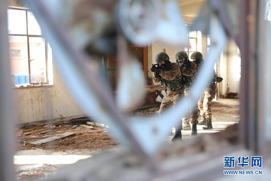 武警第一機動總隊某支隊特戰(zhàn)隊員在進行房間搜索訓練(12月15日攝)。新華社發(fā)(常龍 攝)