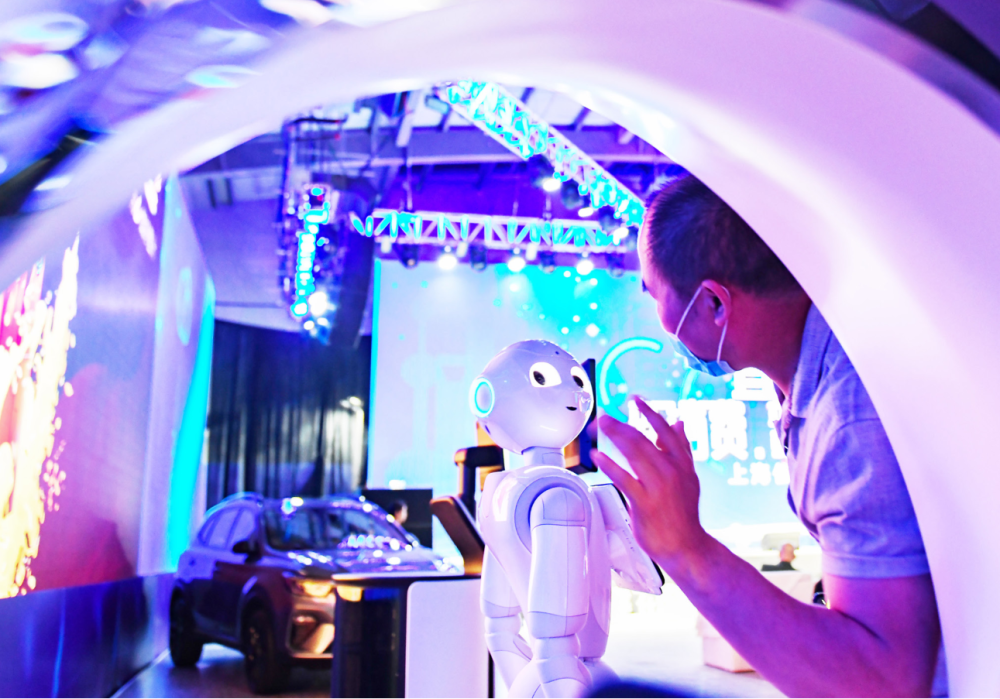 5月17日,上海信息消費(fèi)云峰匯現(xiàn)場(chǎng)的智能機(jī)器人