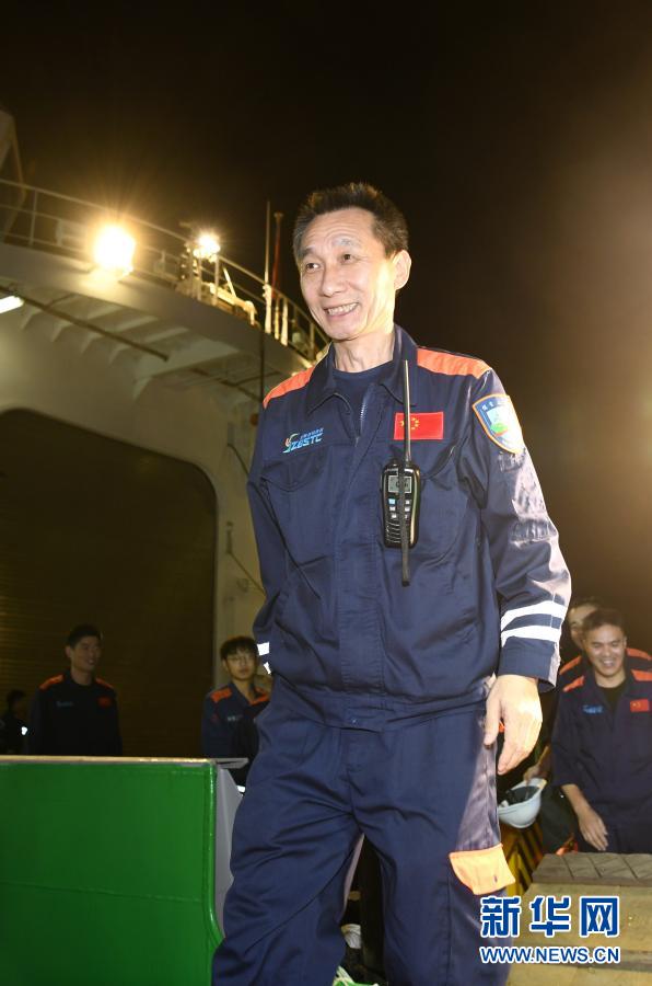 12月21日,“奮斗者”號海試保障母船“探索二號”靠泊三亞,科考隊員離船。新華社記者 趙穎全 攝