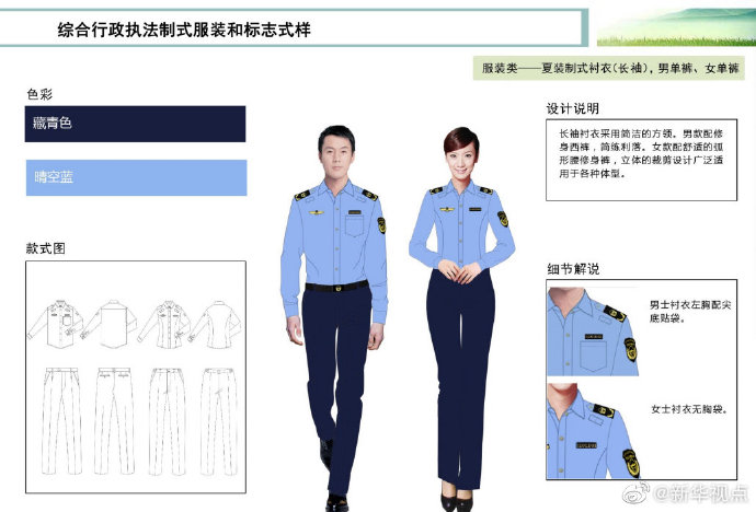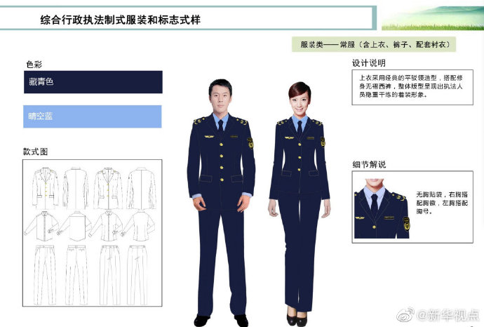 【這些綜合行政執(zhí)法部門將統(tǒng)一著裝,你喜歡嗎?】財政部、司法部日前印發(fā)《綜合行政執(zhí)法制式服裝和標志管理辦法》,明確加強生態(tài)環(huán)境保護、交通運輸、農(nóng)業(yè)、文化市場、應急管理、市場監(jiān)管等綜合行政執(zhí)法制式服裝和標志管理。這6支綜合行政執(zhí)法隊伍將統(tǒng)一著裝,不同執(zhí)法隊伍通過標志中的名稱和圖案加以區(qū)分,徹底解決長期以來不同執(zhí)法部門著裝五花八門的問題。來看看這些“新衣”預覽吧?。ㄓ浾呱赇?、白陽)