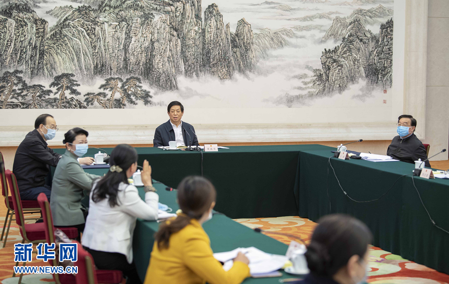 中共中央政治局委員、全國人大常委會副委員長王晨主持座談會。