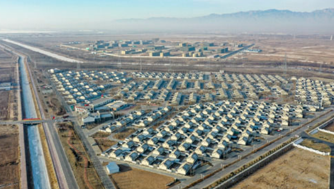 銀川市潤豐村全景(無人機(jī)照片,12月31日攝)。新華社記者 馮開華 攝