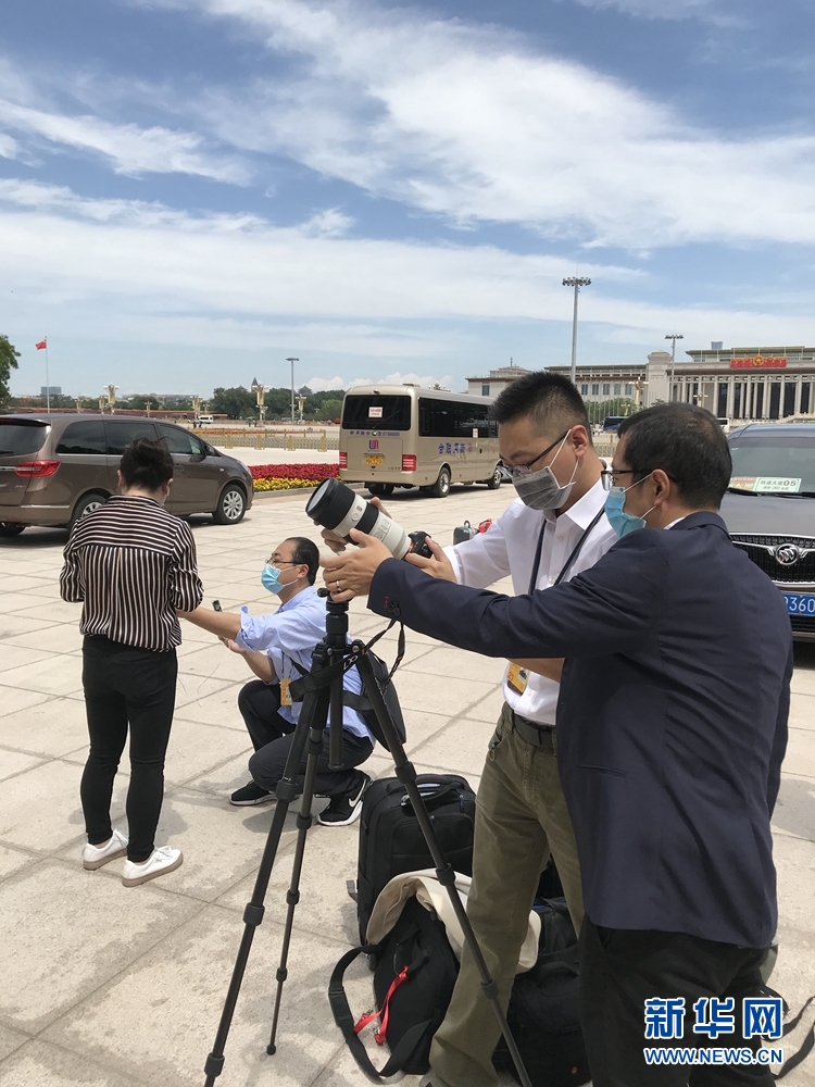 5月20日,全國(guó)政協(xié)十三屆三次會(huì)議召開新聞發(fā)布會(huì)。大會(huì)新聞發(fā)言人郭衛(wèi)民向中外媒體介紹本次大會(huì)有關(guān)情況并回答記者提問(wèn)。圖為本網(wǎng)記者在人民大會(huì)堂東門外廣場(chǎng)做直播前準(zhǔn)備工作。新華網(wǎng)記者 周紅軍? 攝