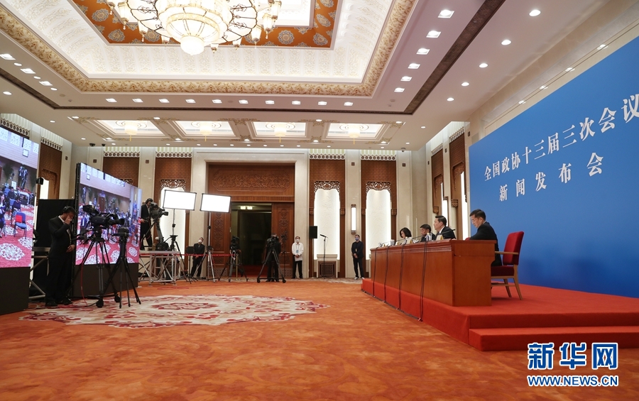 5月20日,全國政協(xié)十三屆三次會(huì)議召開新聞發(fā)布會(huì)。大會(huì)新聞發(fā)言人郭衛(wèi)民向中外媒體介紹本次大會(huì)有關(guān)情況并回答記者提問。圖為新聞發(fā)布會(huì)現(xiàn)場(chǎng)。新華網(wǎng)記者 王翰林 攝