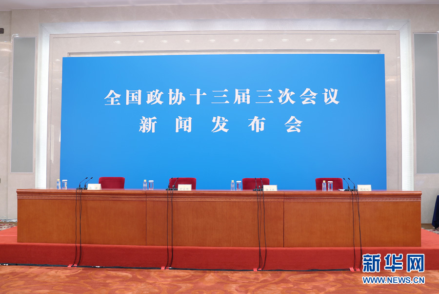 ??? 全國政協(xié)十三屆三次會議新聞發(fā)布會于5月20日15:00召開。為有效防控疫情,共同維護(hù)公共衛(wèi)生與健康,發(fā)布會將采用網(wǎng)絡(luò)視頻形式進(jìn)行。大會新聞發(fā)言人郭衛(wèi)民向中外媒體介紹本次大會有關(guān)情況并回答記者提問。新華網(wǎng)進(jìn)行現(xiàn)場直播。圖為新聞發(fā)布會現(xiàn)場。新華網(wǎng)?王翰林 攝