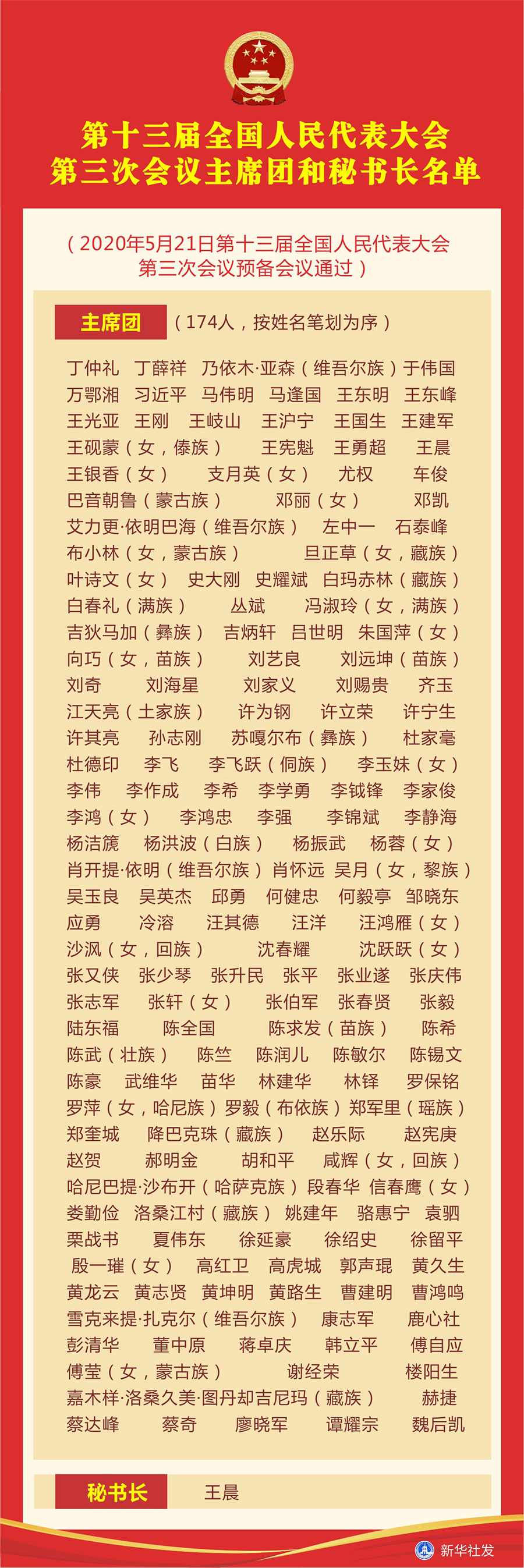 主席團(tuán)(174人,按姓名筆劃為序)