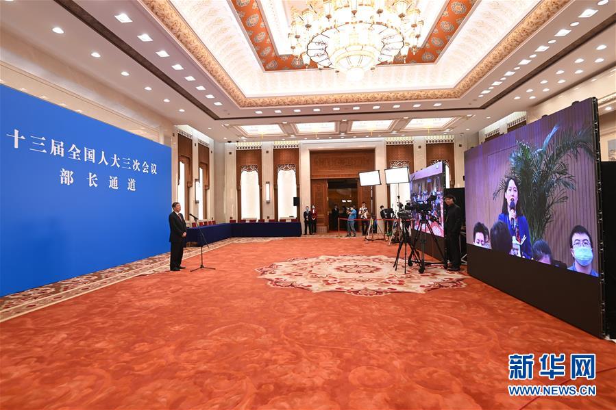 5月22日,第十三屆全國人民代表大會第三次會議舉行首場“部長通道”采訪活動。這是國家發(fā)展和改革委員會主任何立峰通過網(wǎng)絡(luò)視頻方式接受采訪。 新華社記者 陳曄華 攝