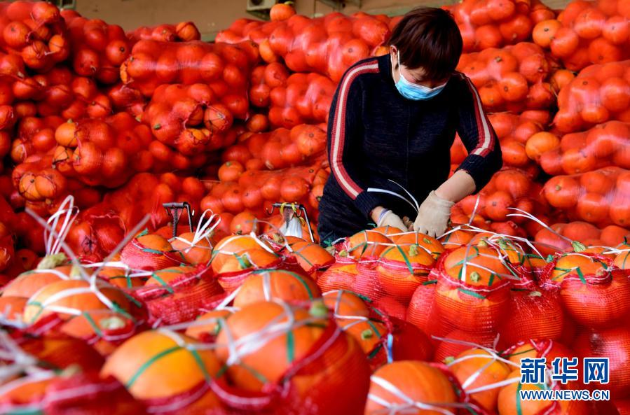 2月5日,在鄭州市中牟縣萬(wàn)邦國(guó)際農(nóng)產(chǎn)品物流城,工作人員在整理蔬菜。新華社記者 朱祥 攝