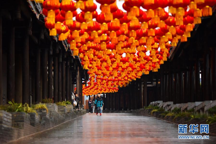 重慶市酉陽(yáng)土家族苗族自治縣酉州古城街道上掛起了紅燈籠(2月10日攝)。新華社發(fā)(陳碧生 攝)