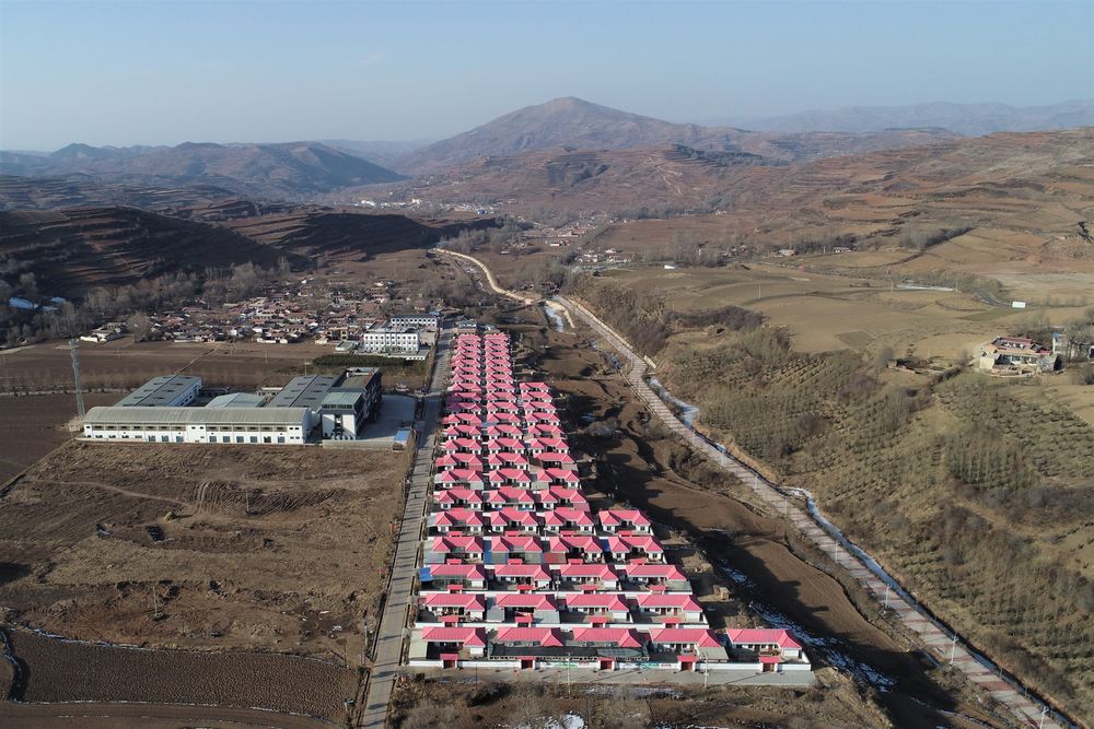 這是2月6日在甘肅省定西市渭源縣元古堆村拍攝的易地扶貧搬遷點(diǎn)(無人機(jī)照片)。新華社記者 馬希平 攝