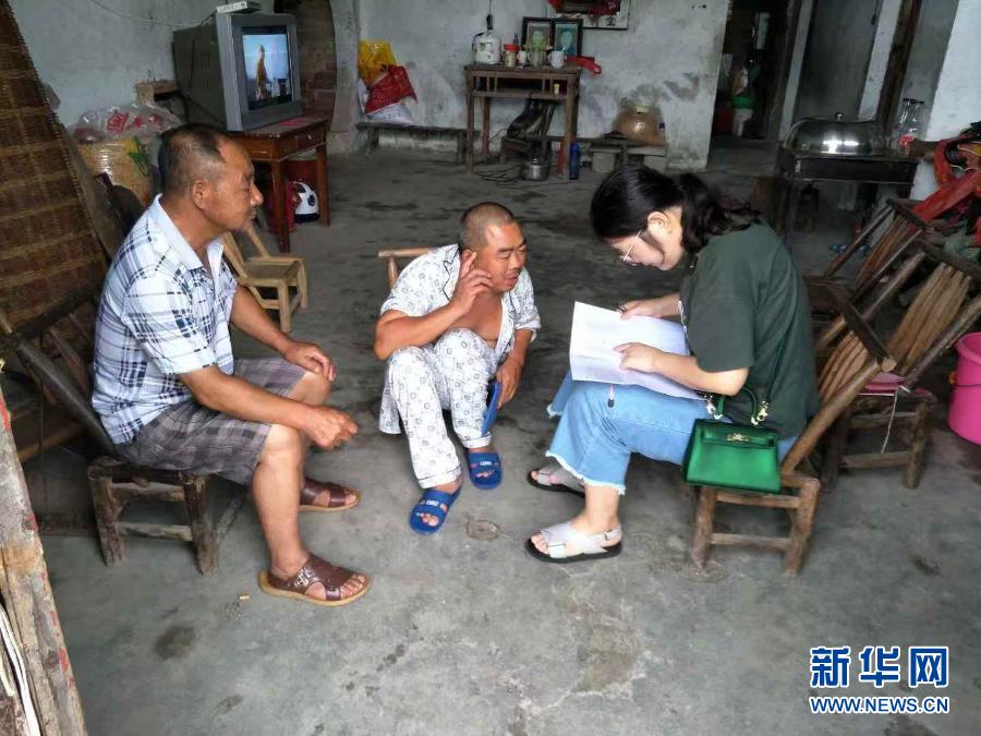 吳應(yīng)譜(左)在走訪(fǎng)貧困戶(hù)(資料照片)。新華社發(fā)(修水縣委宣傳部供圖)