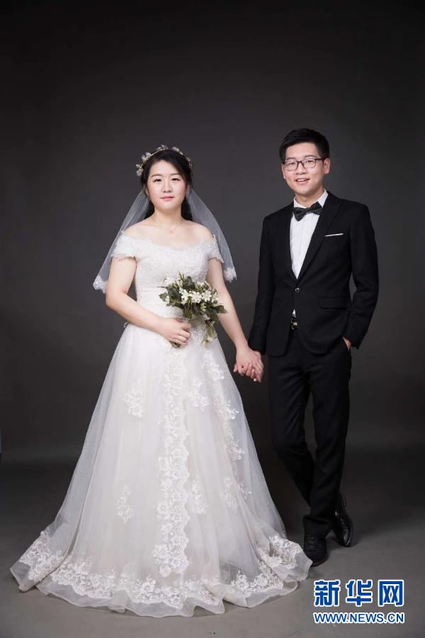 吳應(yīng)譜(右)和樊貞子在婚禮當(dāng)天留影(資料照片)。新華社發(fā)(修水縣委宣傳部供圖)