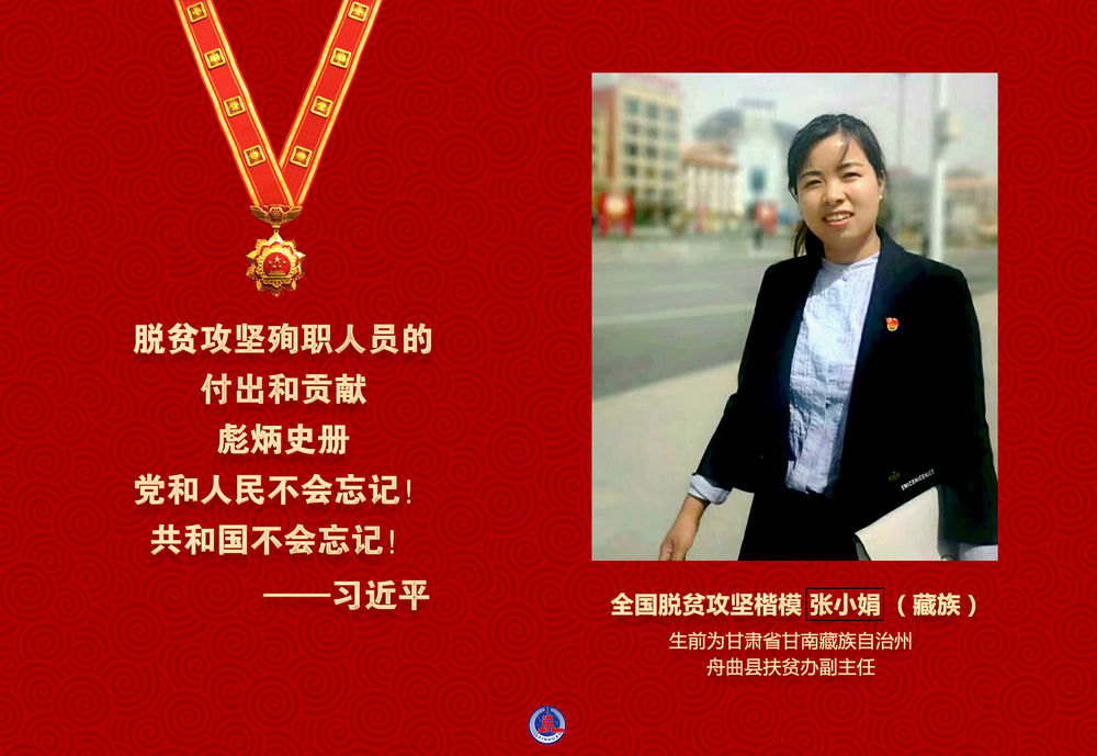 張小娟同志是在習近平新時代中國特色社會主義思想指引下成長起來的優(yōu)秀共產黨員,是在脫貧攻堅一線不懈奮斗的優(yōu)秀青年干部。2019年10月7日,在舟曲縣貧困鄉(xiāng)鎮(zhèn)脫貧攻堅驗收結束返回縣城途中因交通事故不幸殉職,年僅34歲。