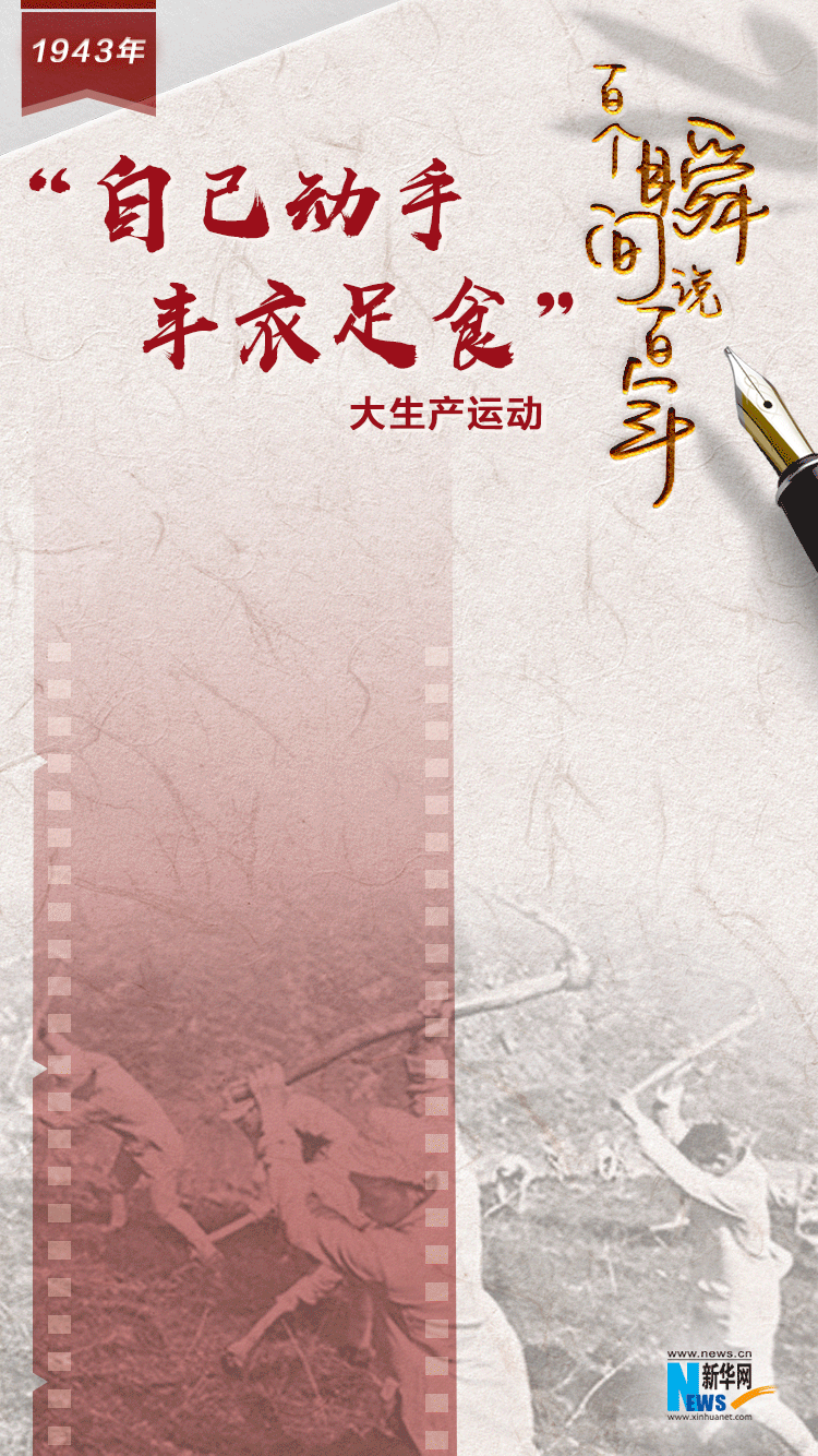 1939年2月,當困難剛剛露頭的時候,毛澤東就發(fā)出了“自己動手”的號召。1941年,黨中央再次強調(diào)必須走生產(chǎn)自救的道路。同年春,八路軍第三五九旅開進南泥灣實行軍墾屯田。戰(zhàn)士們用歌聲喚醒沉睡的土地,用汗水澆出萬頃良田,使昔日荒涼的南泥灣變成了“糧食堆滿倉,麥田翻金浪,豬牛羊肥壯”的“陜北的好江南”。到1944年,第三五九旅除吃用全部自給外,達到了“耕一余一”(即耕種一年莊稼,除消耗外,可剩余一年吃的糧食),成為全軍大生產(chǎn)運動的模范。一曲動人的《南泥灣》流傳至今,久唱不衰。