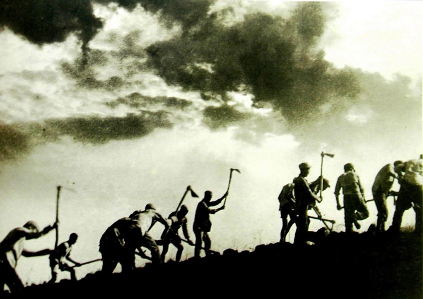 八路軍359旅在南泥灣開荒時的情景。 新華社圖片