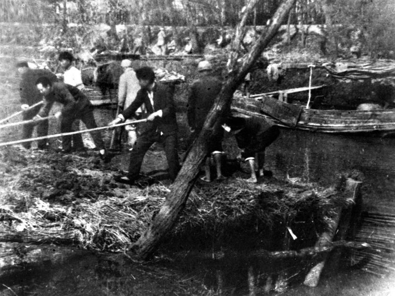 1943年,毛主席在大生產(chǎn)運動中開荒種地。 新華社圖片