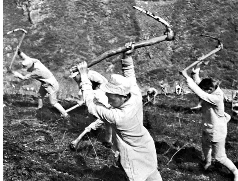 晉察冀邊區(qū)的八路軍指戰(zhàn)員一邊戰(zhàn)斗,一邊開荒生產(chǎn)。 新華社圖片