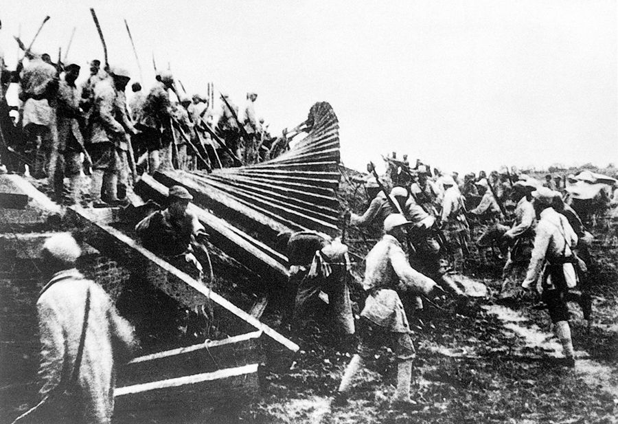 1947年6月30日夜,劉鄧大軍突破國民黨軍隊的黃河防線,挺進大別山,揭開我軍戰(zhàn)略進攻序幕。新華社圖片