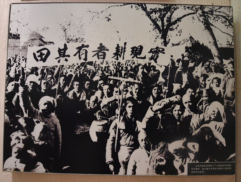 冀中農(nóng)民舉行擁護(hù)土地改革運(yùn)動(dòng)大會(huì)。 新華社圖片