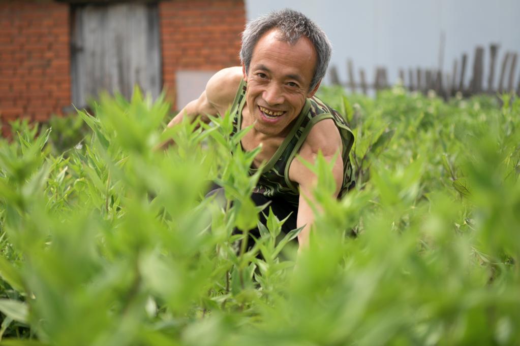 5月15日,黑龍江省望奎縣海豐鎮(zhèn)恭頭一村脫貧戶邊志富在中藥材基地勞作。過(guò)去,恭頭一村村民以種地為主,村里沒(méi)有產(chǎn)業(yè)。駐村工作隊(duì)帶領(lǐng)村民走出一條適合當(dāng)?shù)氐闹兴幉漠a(chǎn)業(yè)之路。