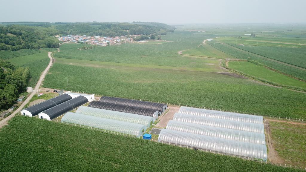 黑龍江省望奎縣海豐鎮(zhèn)恭頭一村的中藥材科研和種苗繁育基地(無(wú)人機(jī)照片,2020年7月4日攝)。新華社記者王建威攝
