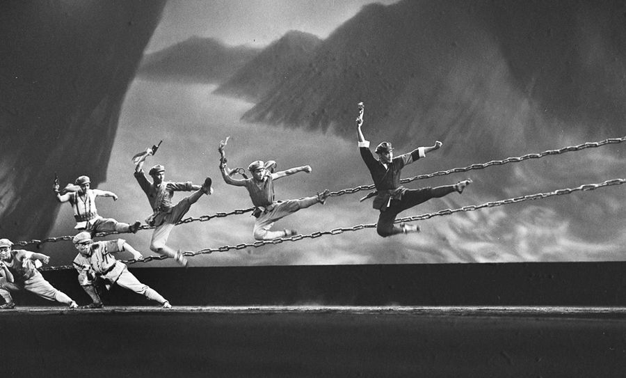 1964年10月,大型音樂舞蹈史詩《東方紅》在北京人民大會堂首演。這是以紅軍長征為主題的《東方紅》第三場《萬水千山》。新華社圖片