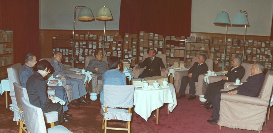 毛澤東主席會(huì)見日本國(guó)內(nèi)閣總理大臣田中角榮。新華社圖片