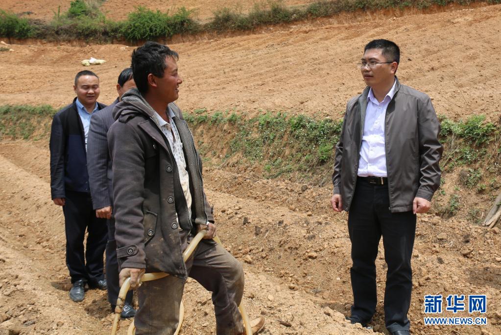 聶金輝(左)在劍川縣彌沙鄉(xiāng)調研時了解當地產業(yè)發(fā)展情況(2016年4月28日攝)。新華社發(fā)(劍川縣融媒體中心供圖)