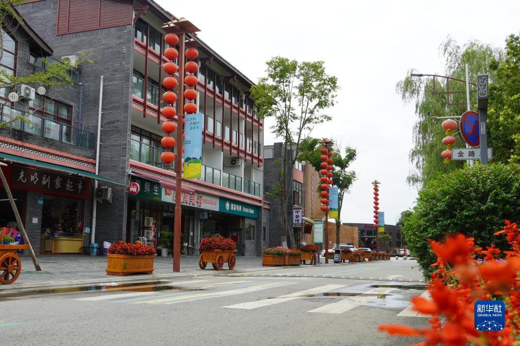 成都市郫都區(qū)戰(zhàn)旗村村口的商鋪(8月8日攝)。新華社發(fā)(郭芯屹 攝)