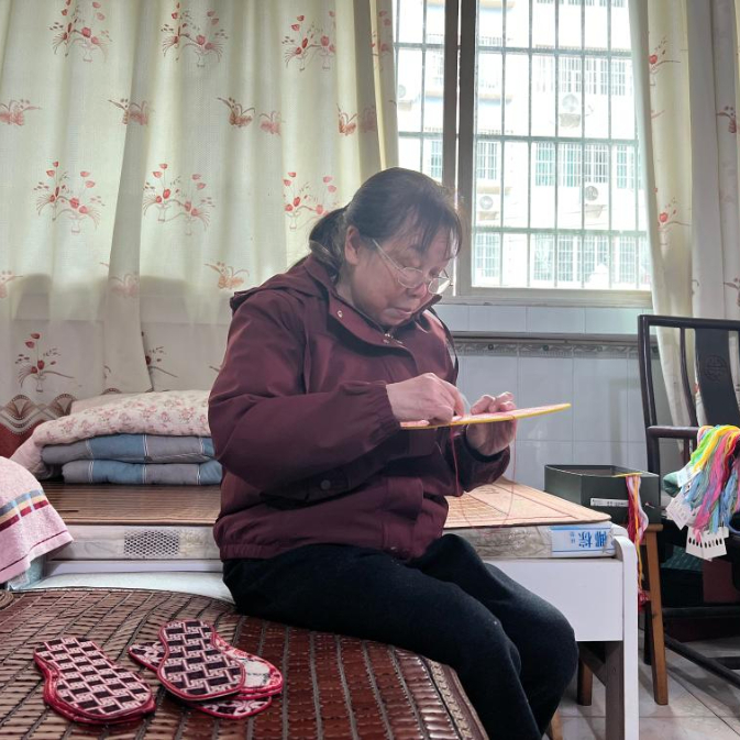重庆大足,张兴会的家中。72岁的她,戴着老花镜,一针一线,在鞋垫上绣着图案。每天绣四五个小时,五六天才能绣完一双。