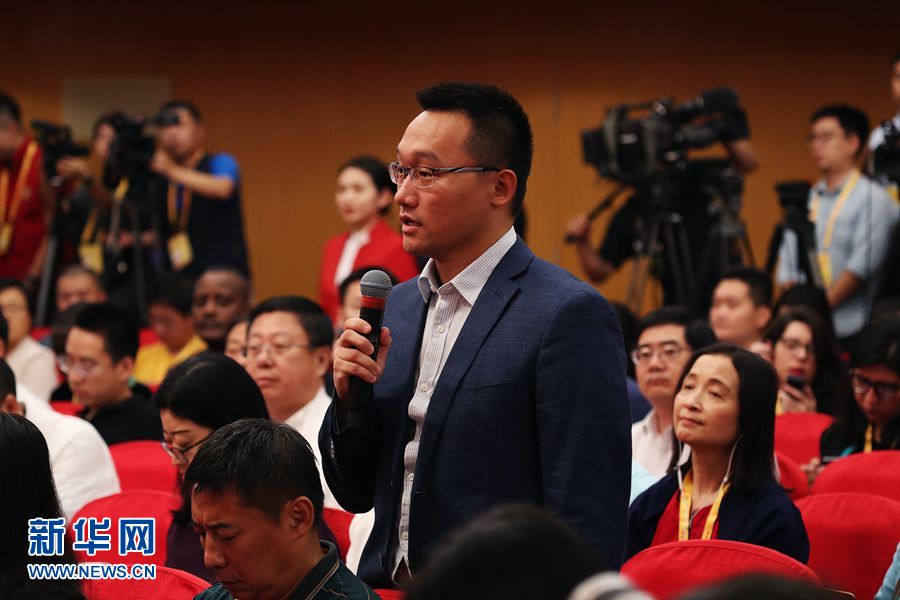 9月29日,慶祝中華人民共和國成立70周年活動新聞中心在北京梅地亞中心二層新聞發(fā)布廳舉辦第四場新聞發(fā)布會。圖為媒體記者提問。新華網(wǎng)記者 焦鵬 攝