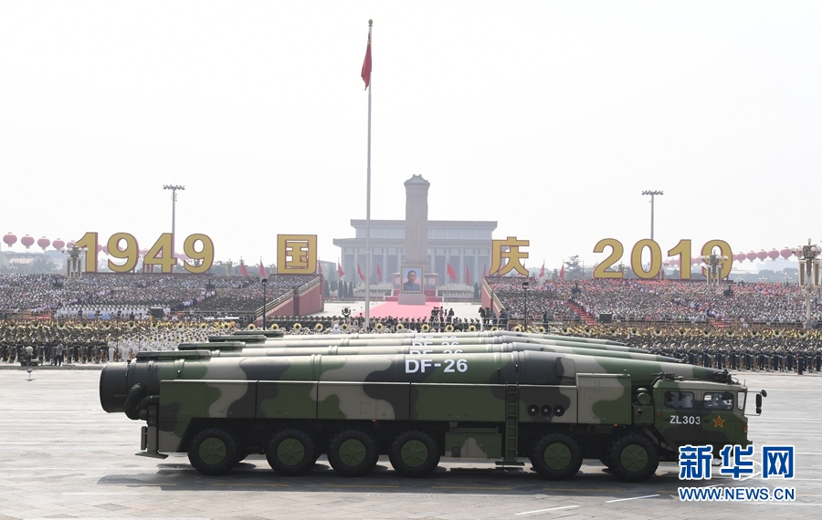 新華社北京10月1日電(記者張選杰、李兵峰)在1日受閱的戰(zhàn)略打擊模塊中,第三個(gè)亮相的是東風(fēng)-26核常兼?zhèn)鋵?dǎo)彈方隊(duì)。