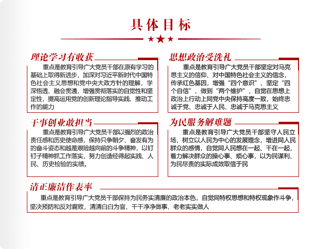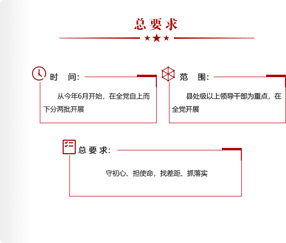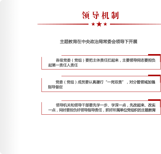 • 主題教育是以習(xí)近平同志為核心的黨中央作出的重大部署,領(lǐng)導(dǎo)干部要提升政治站位,擔(dān)負(fù)好領(lǐng)導(dǎo)指導(dǎo)責(zé)任,抓好所屬單位黨組織的主題教育。對(duì)消極對(duì)待、敷衍應(yīng)付的,要嚴(yán)肅批評(píng);對(duì)走形變樣、問(wèn)題嚴(yán)重的,要給予組織處理,切實(shí)解決執(zhí)行能力不強(qiáng)、執(zhí)行底氣不夠等問(wèn)題,確保主題教育取得實(shí)實(shí)在在成效。 [詳細(xì)]
