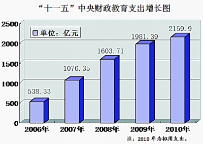 “十一五”中央財(cái)政教育支出增長(zhǎng)圖