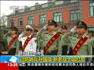 邊防戰(zhàn)士升國旗 新老戰(zhàn)士唱紅歌