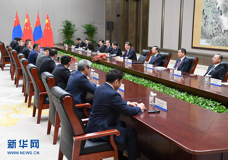 習近平指出,中蒙是山水相連的近鄰。中蒙關系發(fā)展符合兩國人民根本利益。我贊賞總統(tǒng)先生就任后多次表示重視中蒙關系,愿推動中蒙全面戰(zhàn)略伙伴關系不斷發(fā)展。中方愿同蒙方一道,本著互信、合作、共贏原則,把握機遇,排除干擾,扎實開展各領域交往和合作,豐富中蒙全面戰(zhàn)略伙伴關系內涵,開創(chuàng)兩國合作新局面。