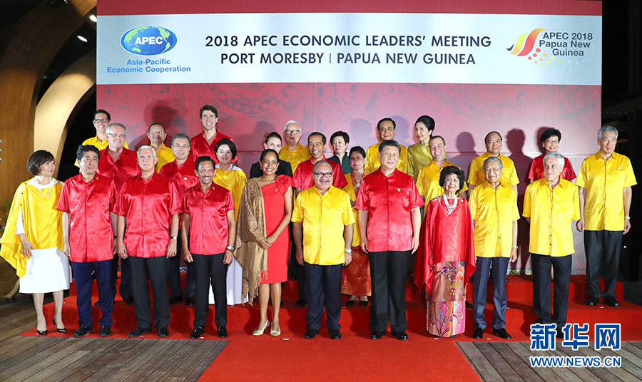 11月17日,國家主席習(xí)近平在莫爾茲比港出席巴布亞新幾內(nèi)亞總理奧尼爾和夫人為出席亞太經(jīng)合組織第二十六次領(lǐng)導(dǎo)人非正式會議的各成員經(jīng)濟體領(lǐng)導(dǎo)人、代表及配偶舉行的歡迎晚宴。這是晚宴前集體合影。 新華社記者 謝環(huán)馳 攝