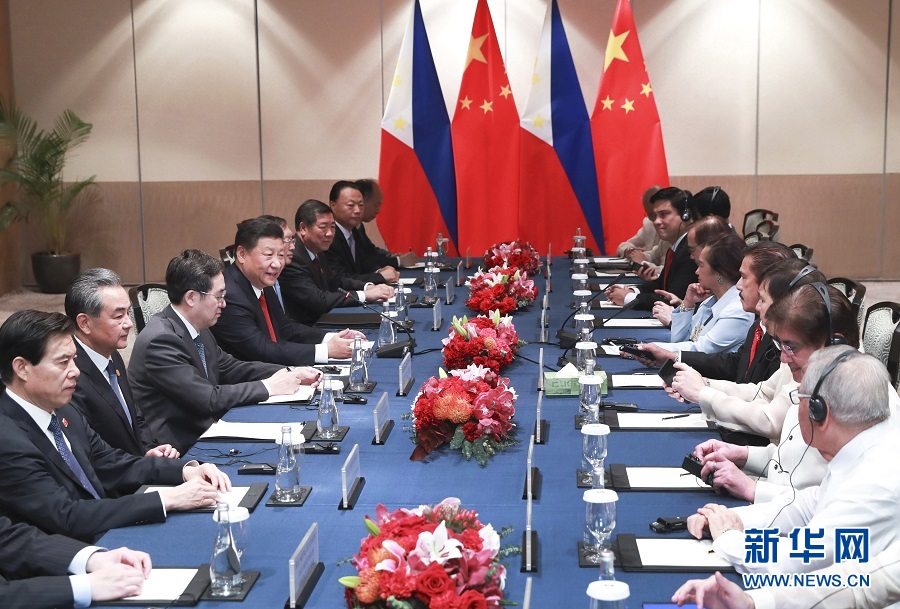 11月21日,國(guó)家主席習(xí)近平在馬尼拉會(huì)見菲律賓眾議長(zhǎng)阿羅約和參議長(zhǎng)索托?!⌒氯A社記者 龐興雷 攝