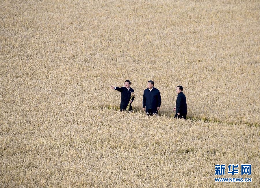 9月25日,習(xí)近平在黑龍江農(nóng)墾建三江管理局了解糧食生產(chǎn)和收獲情況。 新華社記者王曄攝