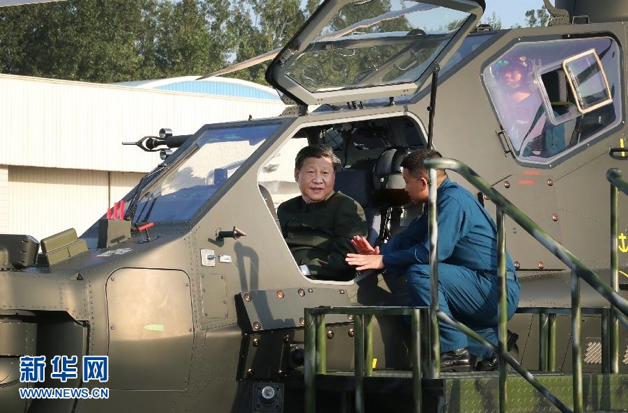 9月27日,習(xí)近平在視察79集團(tuán)軍時登上直-10武裝直升機(jī),親自操控機(jī)載武器及觀瞄系統(tǒng),了解有關(guān)裝備情況。?新華社記者李剛攝