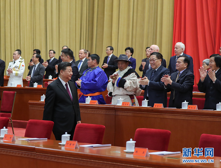 當(dāng)習(xí)近平等領(lǐng)導(dǎo)同志進(jìn)入會(huì)場(chǎng),全場(chǎng)起立,熱烈鼓掌。