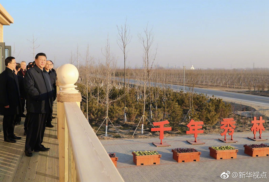 雄安新區(qū)堅持生態(tài)優(yōu)先、綠色發(fā)展,率先啟動生態(tài)基礎設施建設和環(huán)境整治,目前已完成11萬畝“千年秀林”建設。16日下午,習近平總書記來到“千年秀林”大清河片林一區(qū)造林區(qū)域,乘車穿行林區(qū)察看林木長勢,登上秀林驛站二層平臺遠眺林區(qū)全貌,同當?shù)刈o林員代表親切交流。他說,藍天、碧水、綠樹,藍綠交織,將來生活的最高標準就是生態(tài)好。雄安新區(qū)過去有一定的基礎,現(xiàn)在搞“千年秀林”,將來這里一定是最宜居的地方。綠水青山就是金山銀山,雄安新區(qū)就要靠這樣的生態(tài)環(huán)境來體現(xiàn)價值、增加吸引力。(記者張曉松、謝環(huán)馳、鞠鵬)?